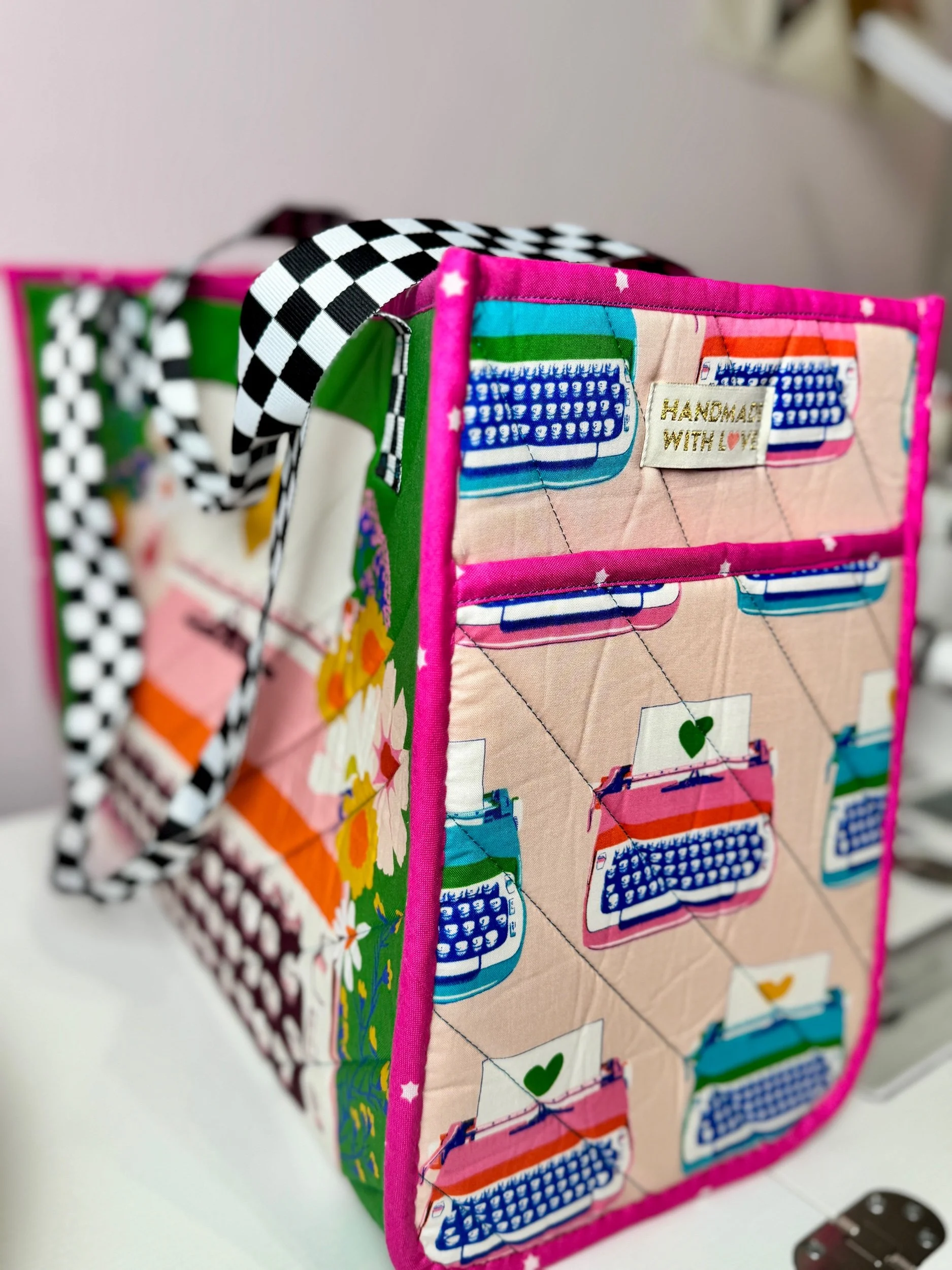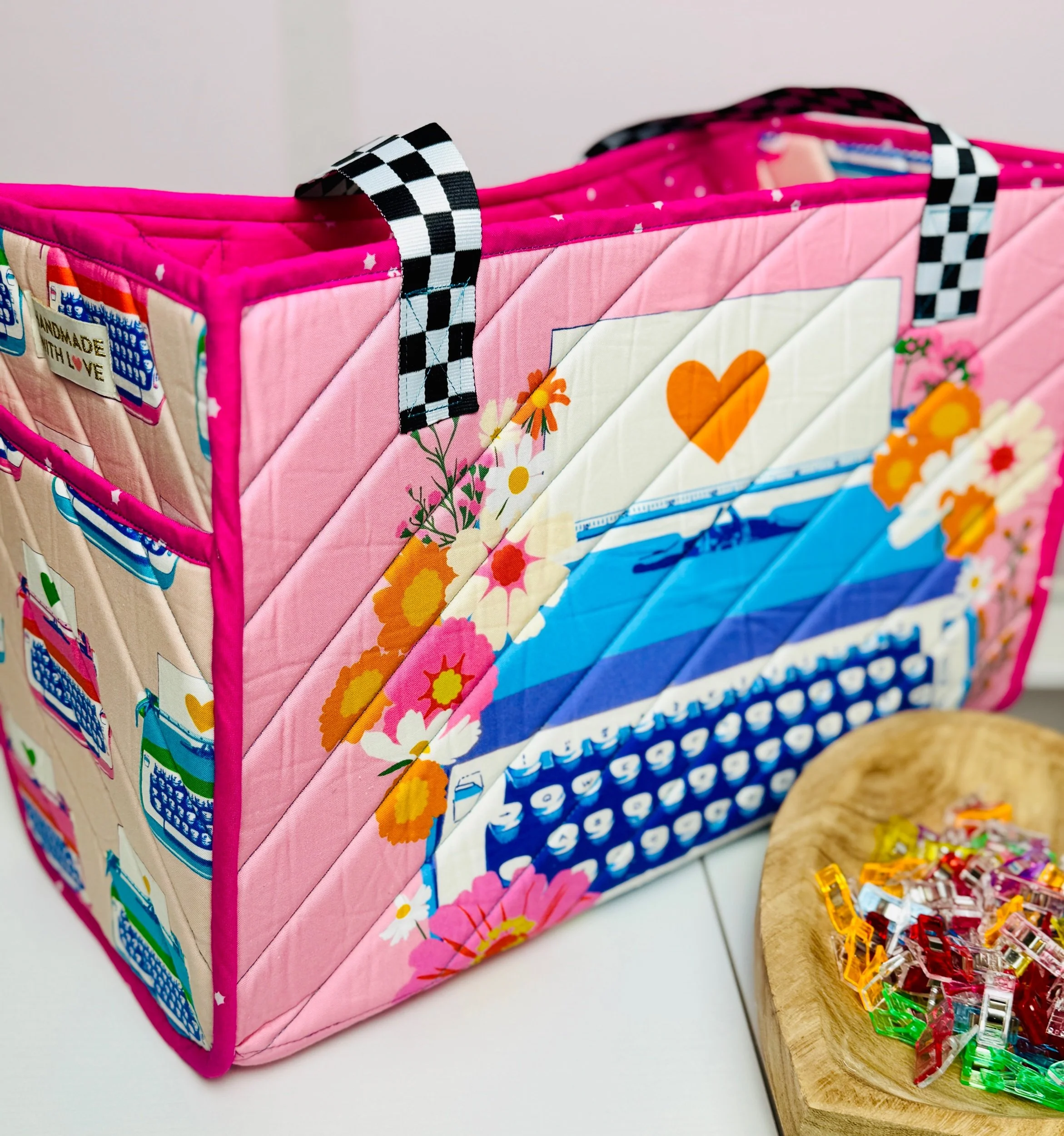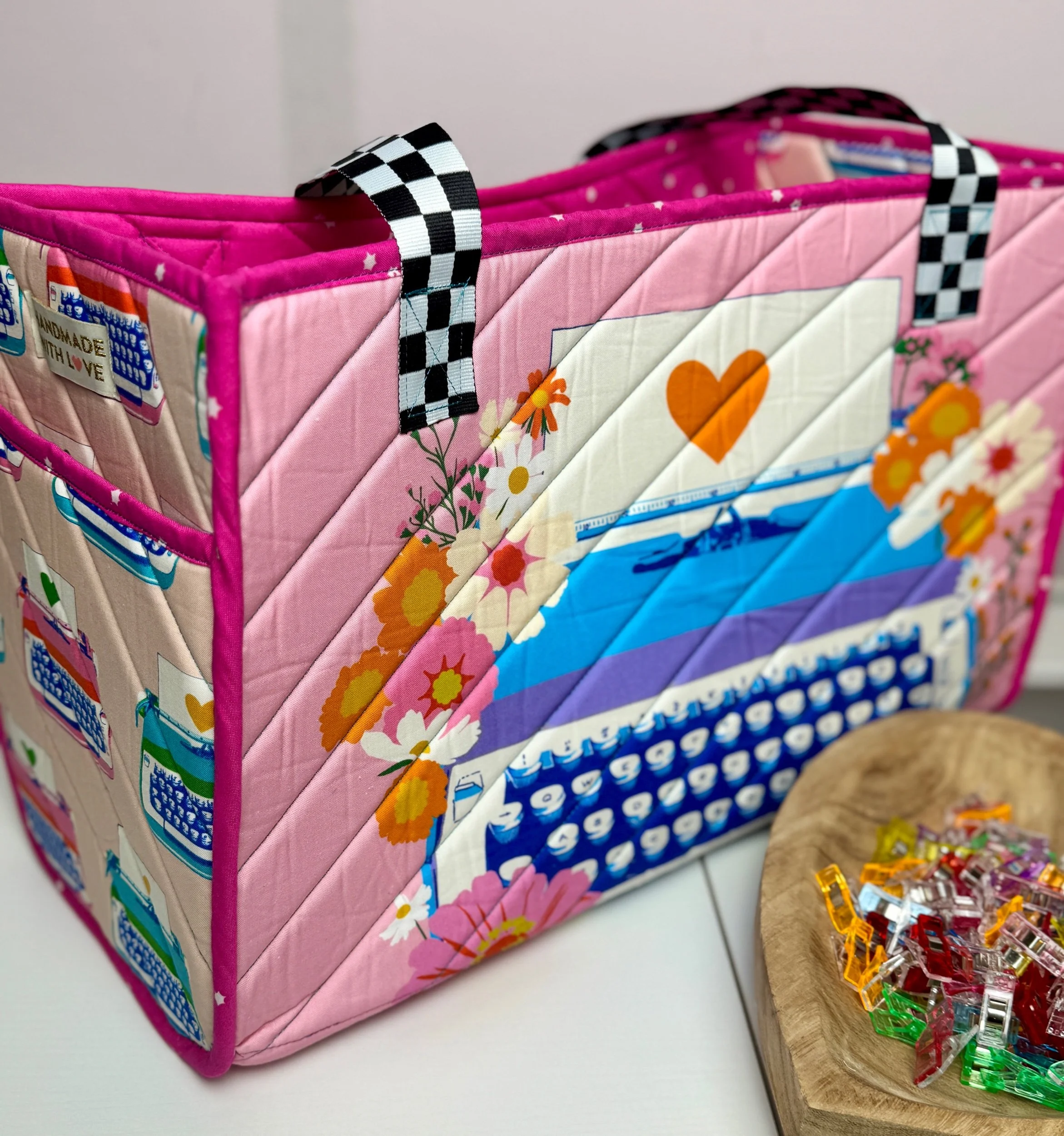 There is a sleeve at the bottom of the bag to fit in acrylic base that you can purchase from ByAnnies Website.